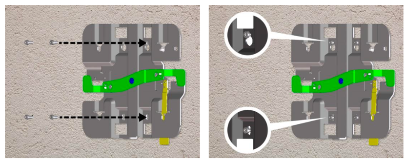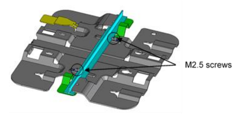 2、使用两颗 M2.5 螺钉将支架固定在 T-Bar 上。