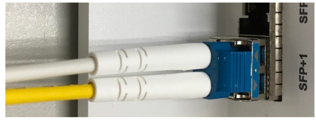 2、将 SFP+ 光纤线缆插入,如下图所示。